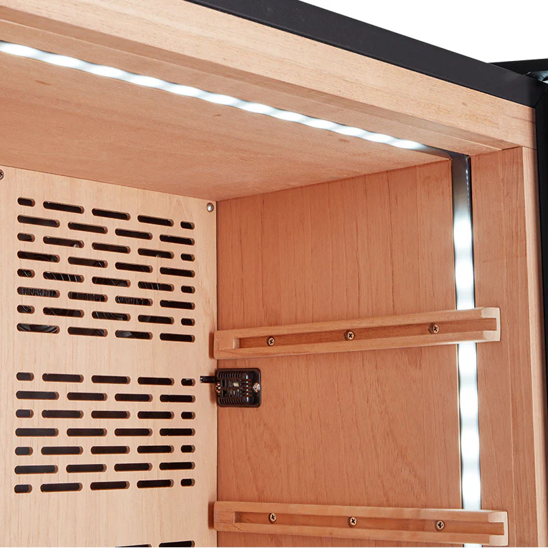 Với hệ ngăn kéo được chế tạo từ gỗ tuyết tùng Tây Ban Nha chất lượng cao, tủ bảo quản xì gà Afidano B6 (1500) không chỉ có tính thẩm mỹ cao mà còn mang lại hương thơm riêng biệt giúp nâng cao hương vị cho xì gà. Gỗ tuyết tùng Tây Ban Nha nổi tiếng với đặc tính hút ẩm, giúp duy trì độ ẩm lý tưởng trong tủ bảo quản.